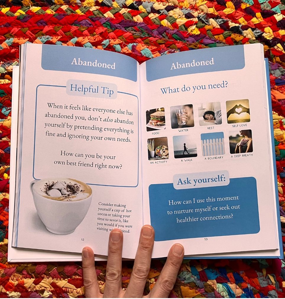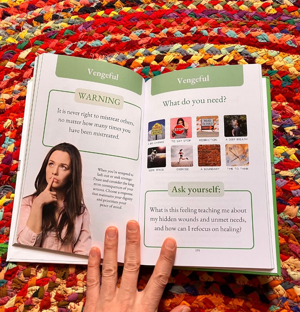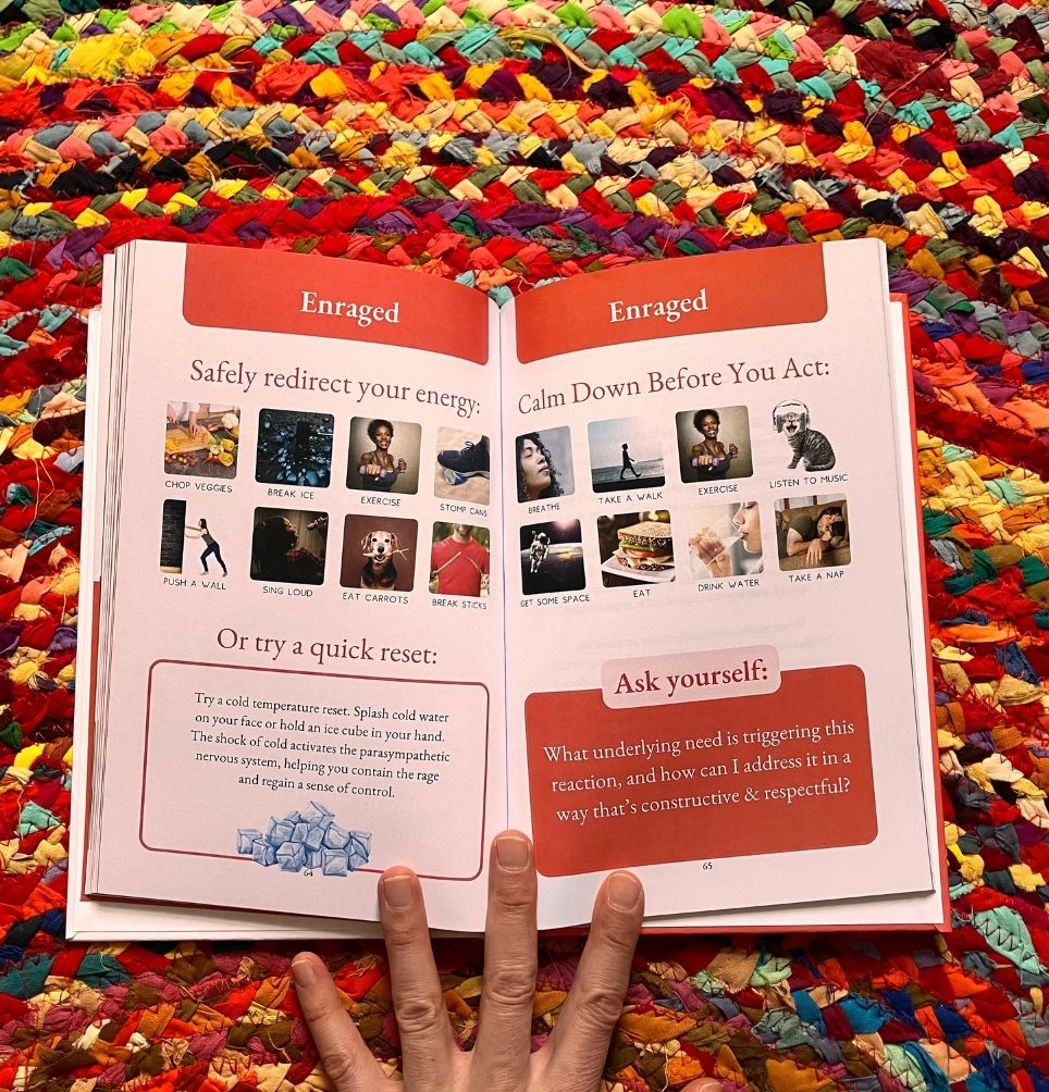 Inside, you’ll find a glossary of emotions with body-based regulation strategies, journaling prompts, and practical choices for navigating challenging moments in everyday life. The book also includes access to supporting online materials to deepen the experience.